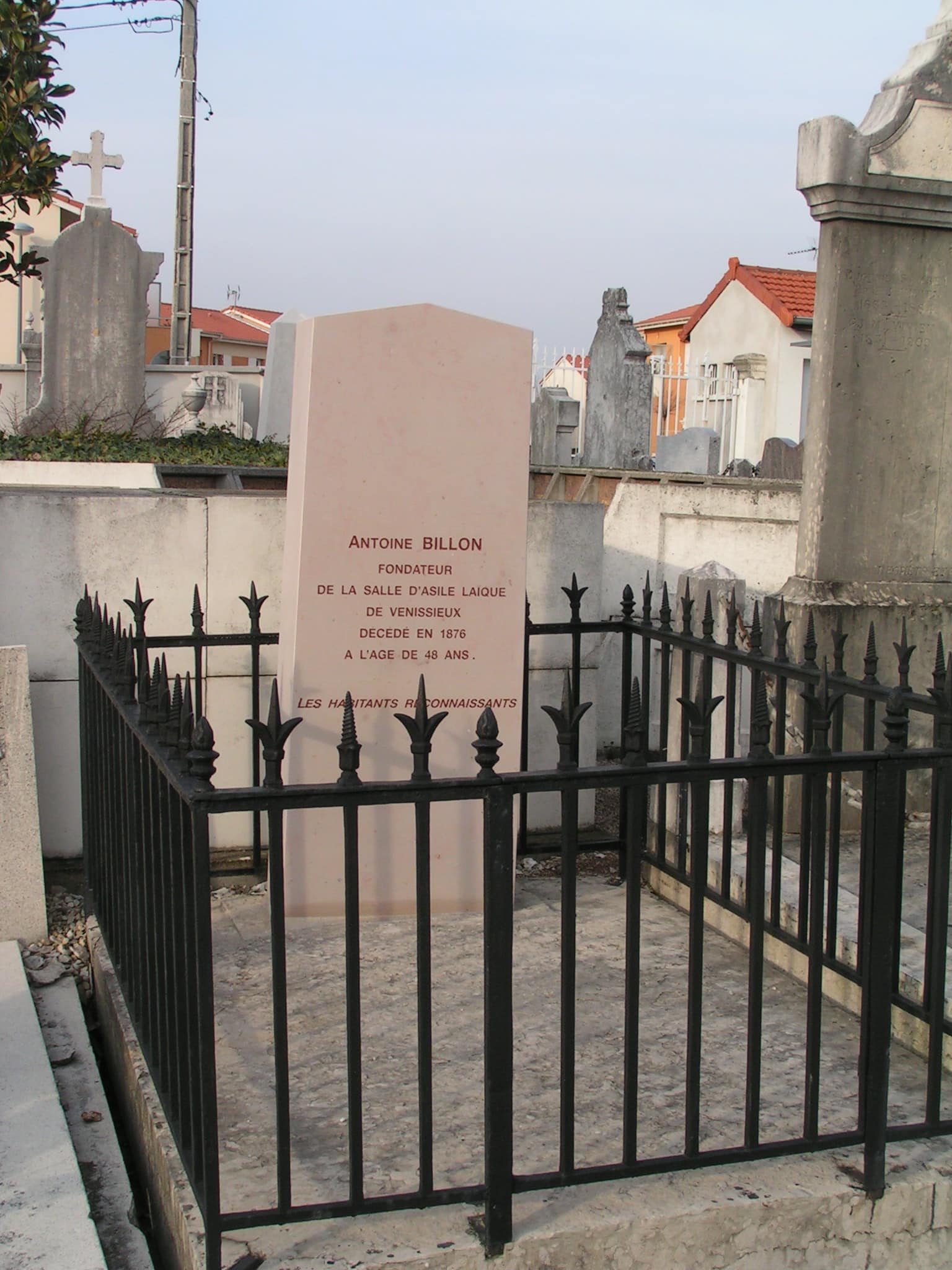 Conformément aux convictions anticléricales du défunt, sa sépulture ne comporte aucun signe religieux. Pourtant, l’histoire d’Antoine Billon connaît un dernier rebondissement ironique : récemment, une main anonyme a déposé une croix sur sa tombe. Bien que ce geste parte sûrement d’une bonne intention, il constitue un véritable paradoxe pour cet homme qui a consacré sa vie et sa fortune à protéger l’éducation des enfants de toute influence confessionnelle.