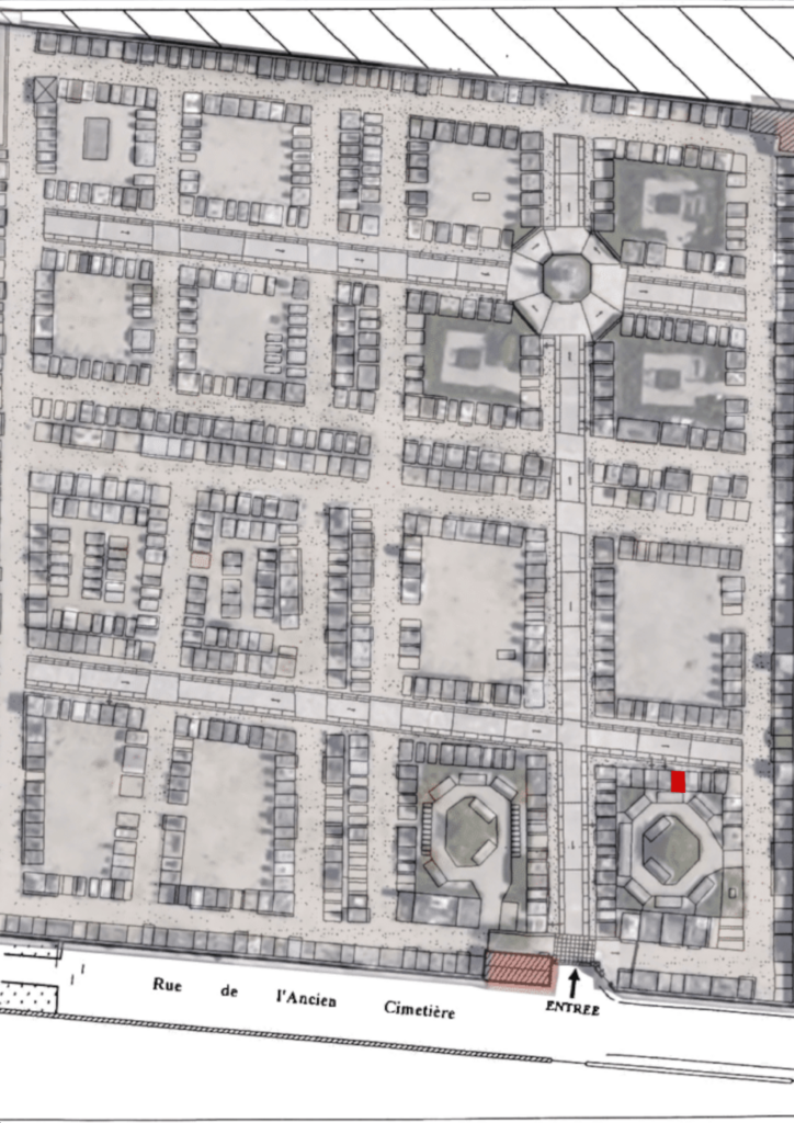 Poursuivez votre chemin et tournez à droite, au Monument aux Morts, tournez à droite, la tombe de la famille Barioz est sur votre gauche.
